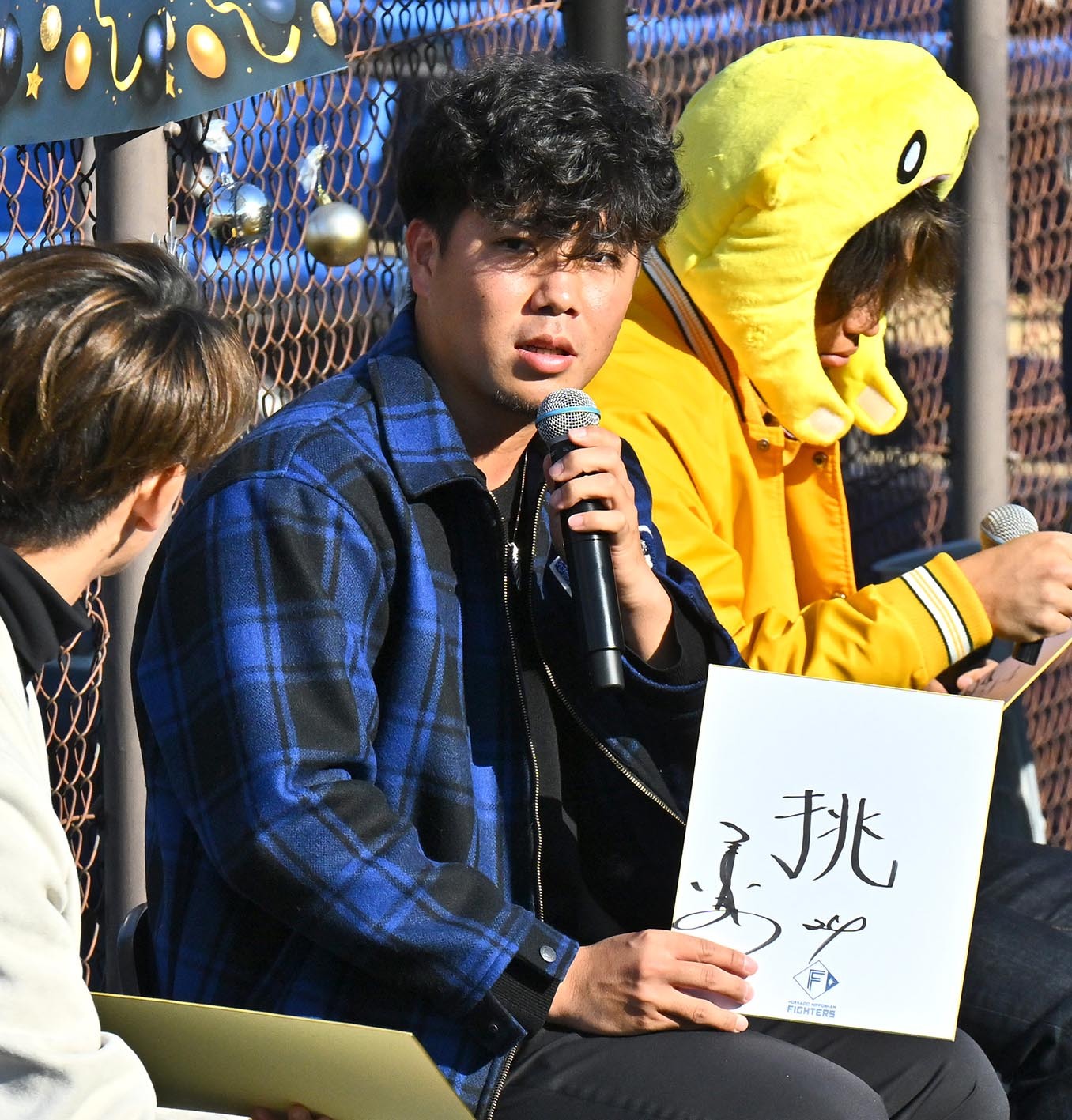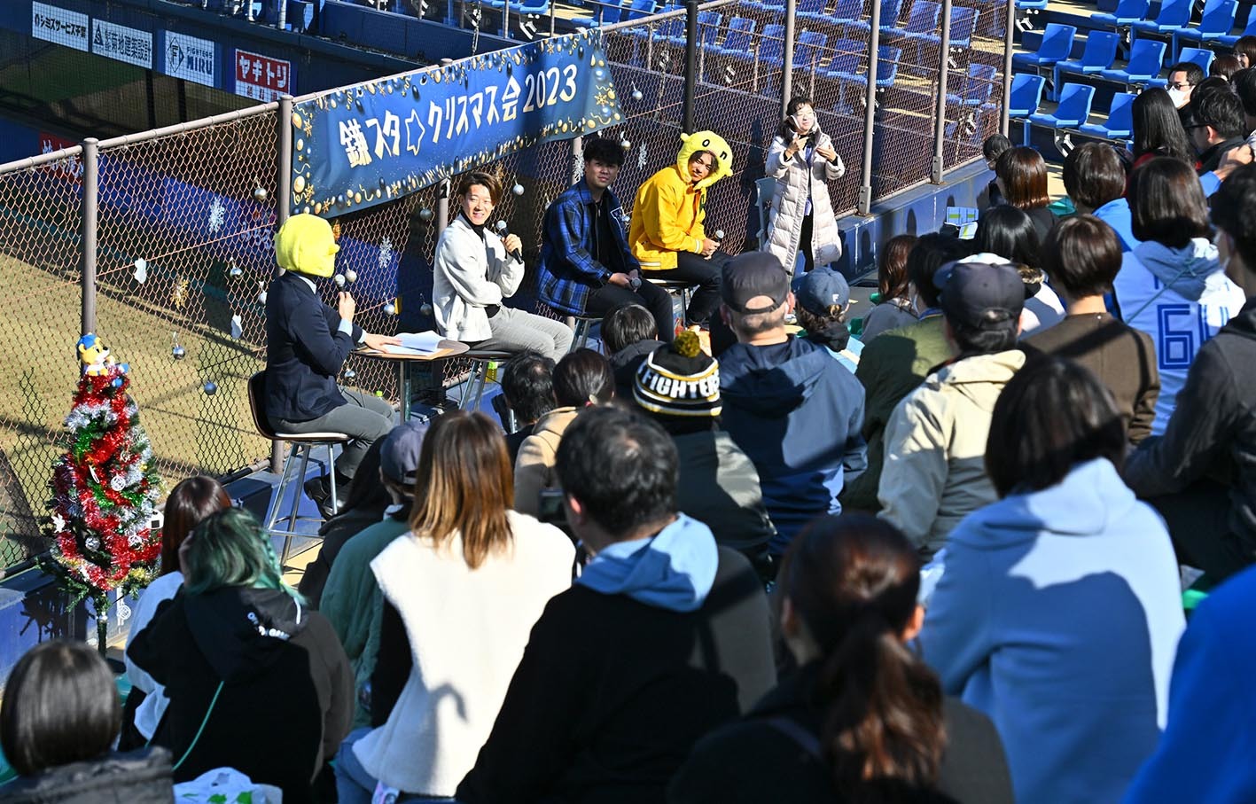 日本ハムは10日、千葉・鎌ケ谷で「鎌スタ☆クリスマス会」を開催した。トークショーには矢沢宏太投手兼外野手(23)、金村尚真投手(23)、田宮裕涼捕手(23)の同学年トリオが登場。息の合ったやり取りで聴衆を引きつけた。ミレニアム世代の3選手は、来季の目標や今年の漢字、クリスマスの予定など様々なエピソードを披露。ファンとの交流を笑顔で楽しんだ。