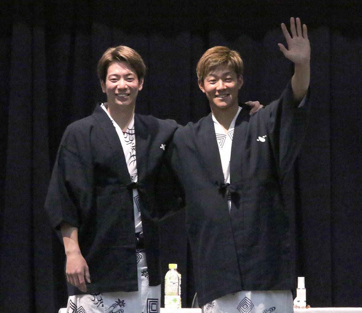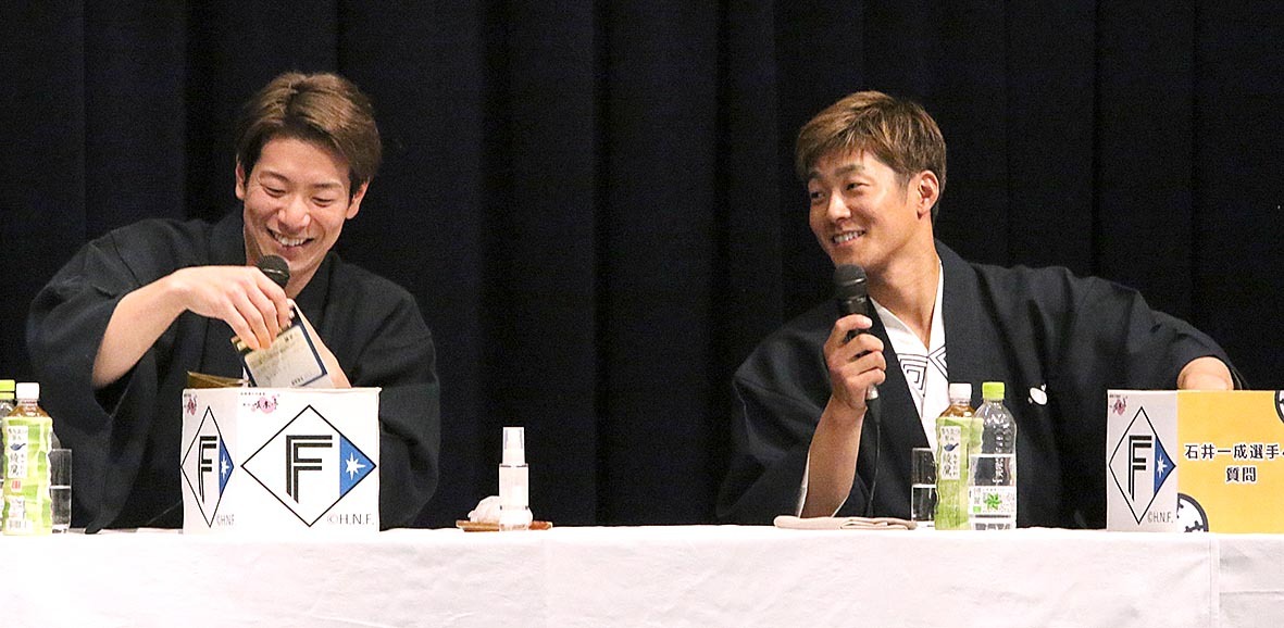 日本ハムの松本剛外野手(30)が18日、石井一成内野手(29)と函館市内の湯元啄木亭で行われた野口観光トークショーに登場。イベント前に取材に応じ、来季もノルマを達成した後輩に褒美を用意する『松本賞』を継続することを明かした。