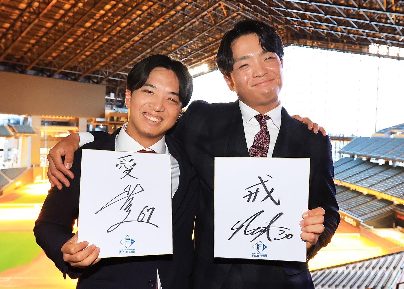 日本ハムの郡司裕也捕手(26)と山本拓実投手(23)によるスペシャル対談は後編をお届けします。軽快なトークを繰り広げつつ、熱く来季への抱負を語った。そして2024年シーズンへの決意を漢字1文字に込めた。山本拓は新婚らしく…
