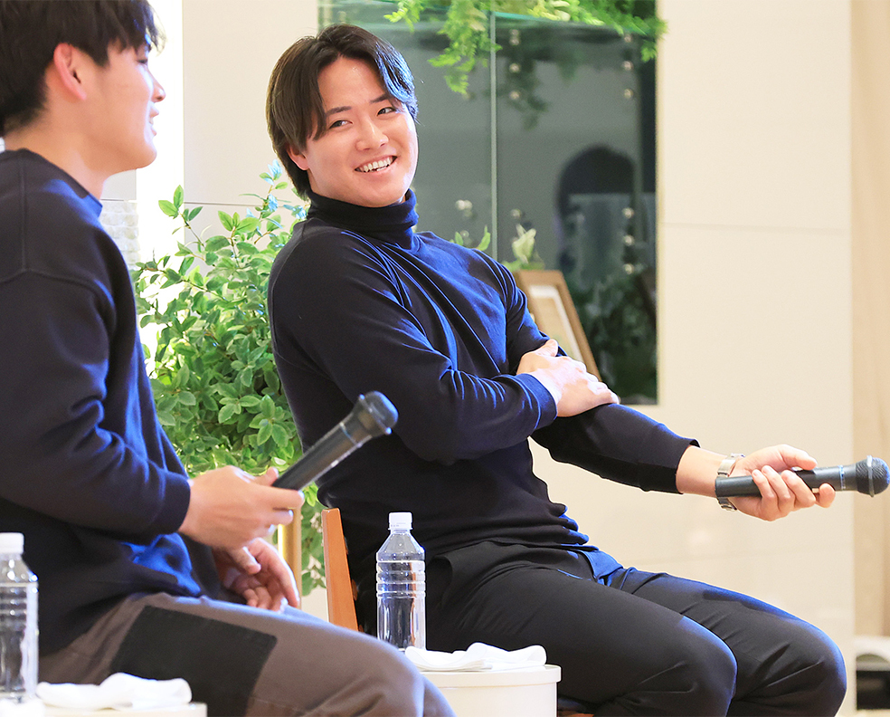 イベント中、笑顔を見せる郡(右)