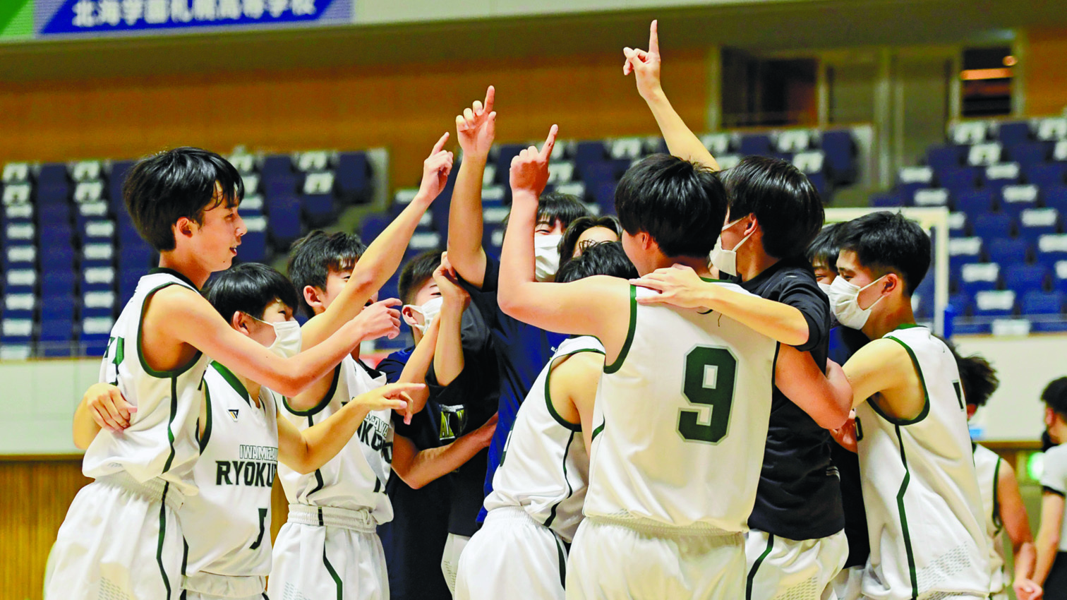 勝利の瞬間、コート上の岩緑陵メンバー、ベンチメンバーが輪になって歓喜に沸いた。3年連続全道進出も2年連続で1回戦敗退が続いていた。SF/PF杉野龍太主将(2年)は「ベスト8を目標にしていた先輩たちが、成し遂げられなかった壁を乗り越えられた」と、感極まった。