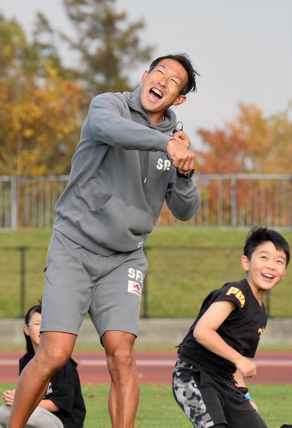 23年10月28日、地元の江別市で行われた子供向けのイベントに参加し、体を動かすコツを教える右代