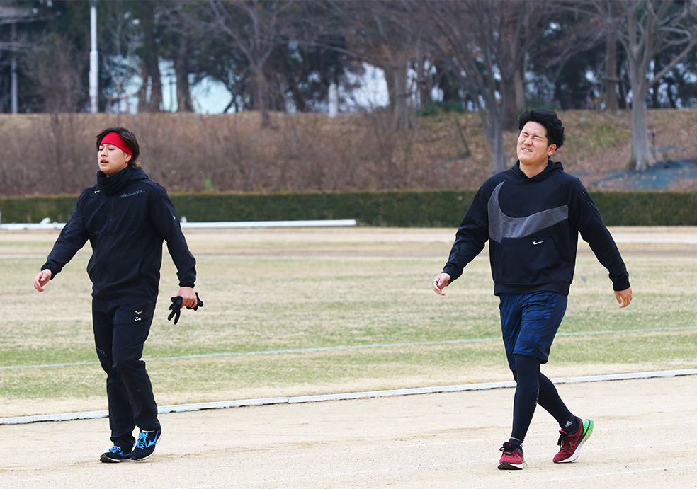 弟子たちの顔色が変わる瞬間を見逃さなかった。チーム宮西の自主トレ公開日。タイム設定付きの100メートルダッシュ15本が終わり、一息つこうとしていたとき、師匠が笑顔で何かを伝えていた。特命を授かった堀と山本晃が殺気をまとい、報道陣のもとに歩み寄ってきた。いきなり「じゃんけん、お願いします!」と頼まれた。