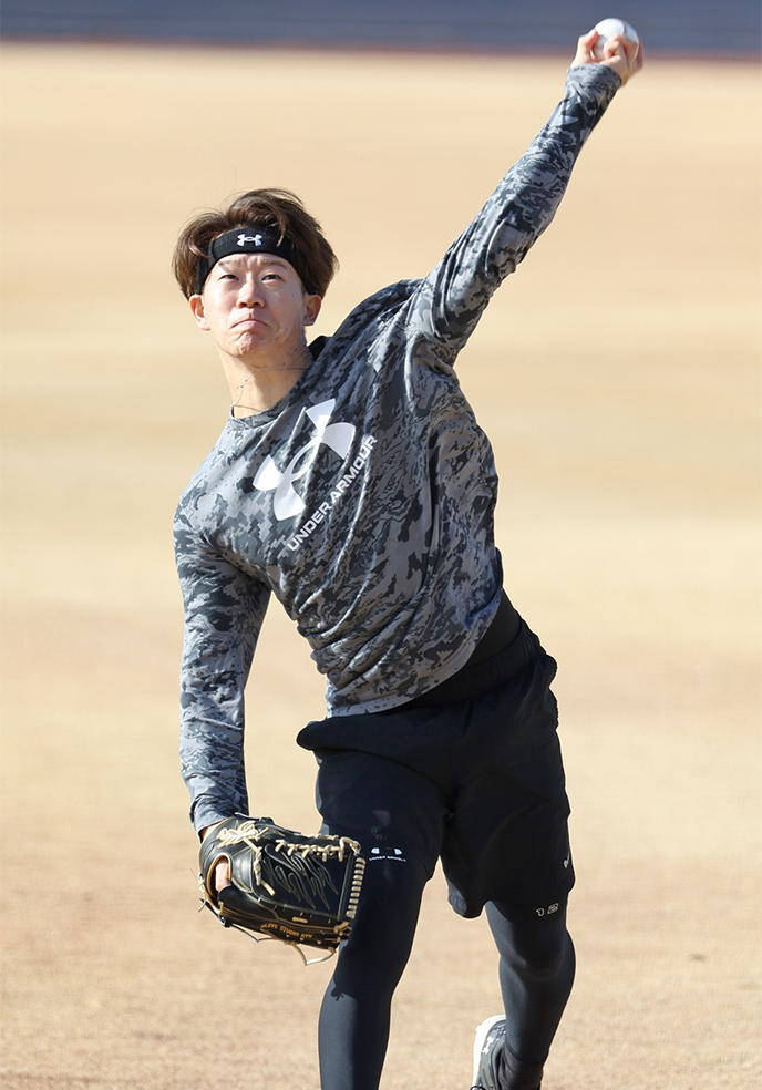 昨年11月に手術も順調回復 合同トレ行う新人たちの横で強めのボール