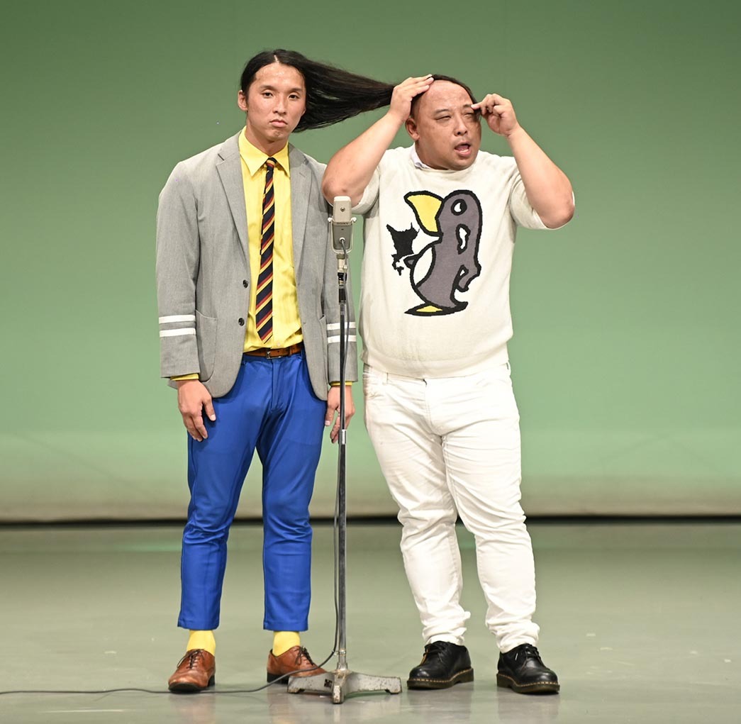 みちお「異空間、元気、恐怖、宇宙、エネルギー、恐怖。終演後、あなたは現実のマイハウスに戻れるか……。元気とエネルギーと恐怖いっぱいでがんばりますので是非皆さん単独ライブを見に来てください。15年に1度の東名阪プラス福岡、札幌。いつもと違う、いつも以上の『熱』を皆の脳幹に打ち込むぞー!! しかも今回はキングオブコントのキング、ハナコの!! 魂!! を受け継いでおります。さあ! ハナコの3人の関節で作ったセンターマイクで……漫才だ!!」