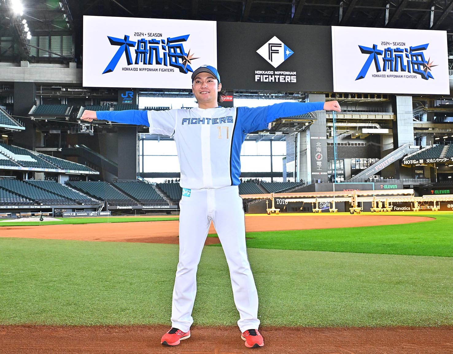 日本ハムは11日、2024年のチームスローガンが「大航海」に決まったと発表した。午後1時11分からエスコンフィールド北海道で行われた発表会見には、チームを代表して伊藤大海投手(26)が登場。自らの名前を連想させるワードに「パッと見た時に、僕の名前が入ってるなって第一印象でした」と胸を高鳴らせた。