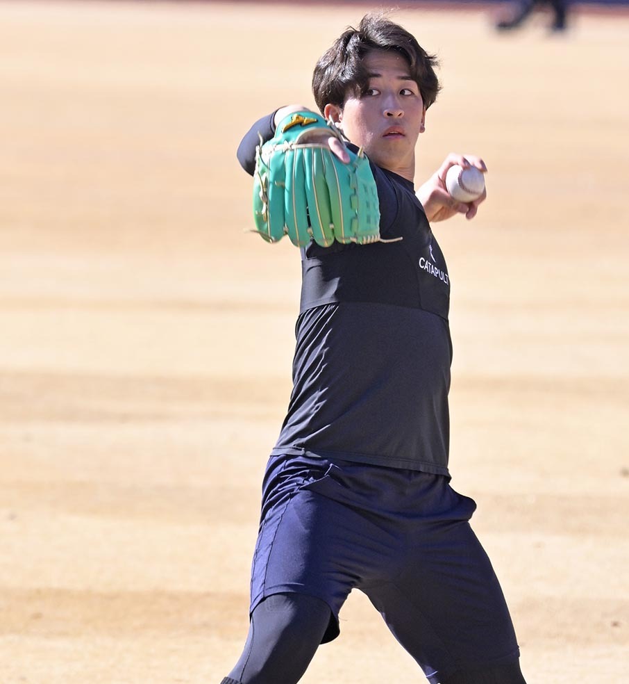 ドラ1細野晴希 15日に初のブルペン入り 緑色グラブにはお気に入りのキャラ名を刺しゅう