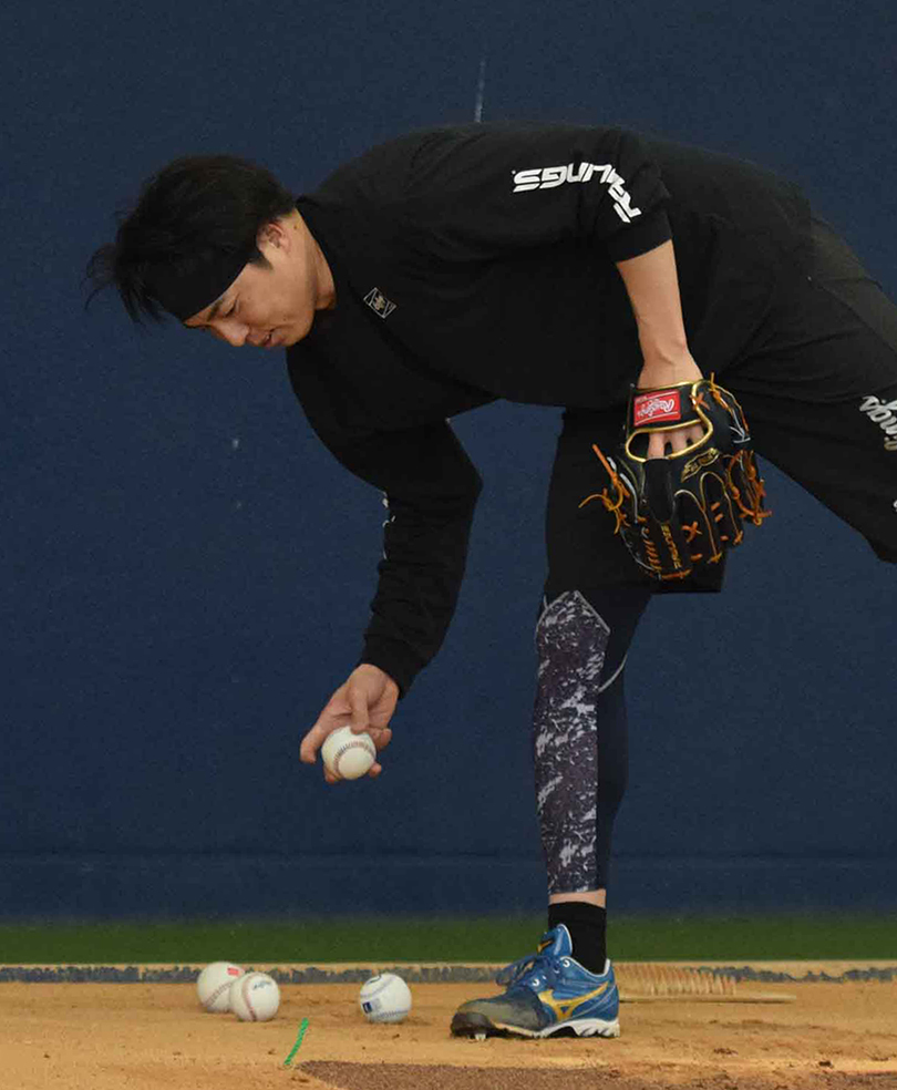 繊細な感覚に、より一層の磨きをかけている。この日のブルペンには、異なる4つのボールを持ち込んだ。NPB球に加えて、摩擦の少ないMLB球。さらに通常の5オンス(141・7グラム)とは1オンスずつ重さの違う4オンスと6オンスのボールを使い分けた。