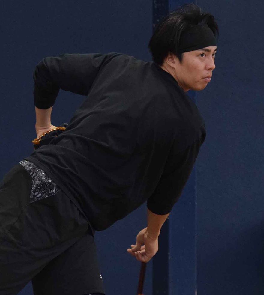 先乗り合同自主トレに参加 ブルペンでユニークな投球練習