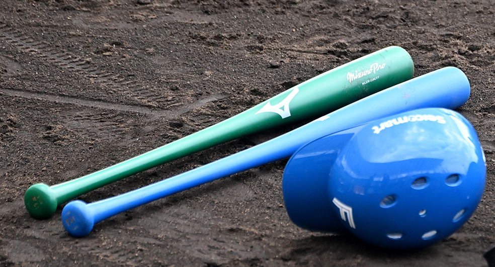 「緑が重たいバットで、青が軽いバット。重さを変えて。それこそ今、みんなドライブラインでやっていますけど、重さを変えて、神経系のトレーニングというか。スイングスピードを変えるために取り組んでいます」