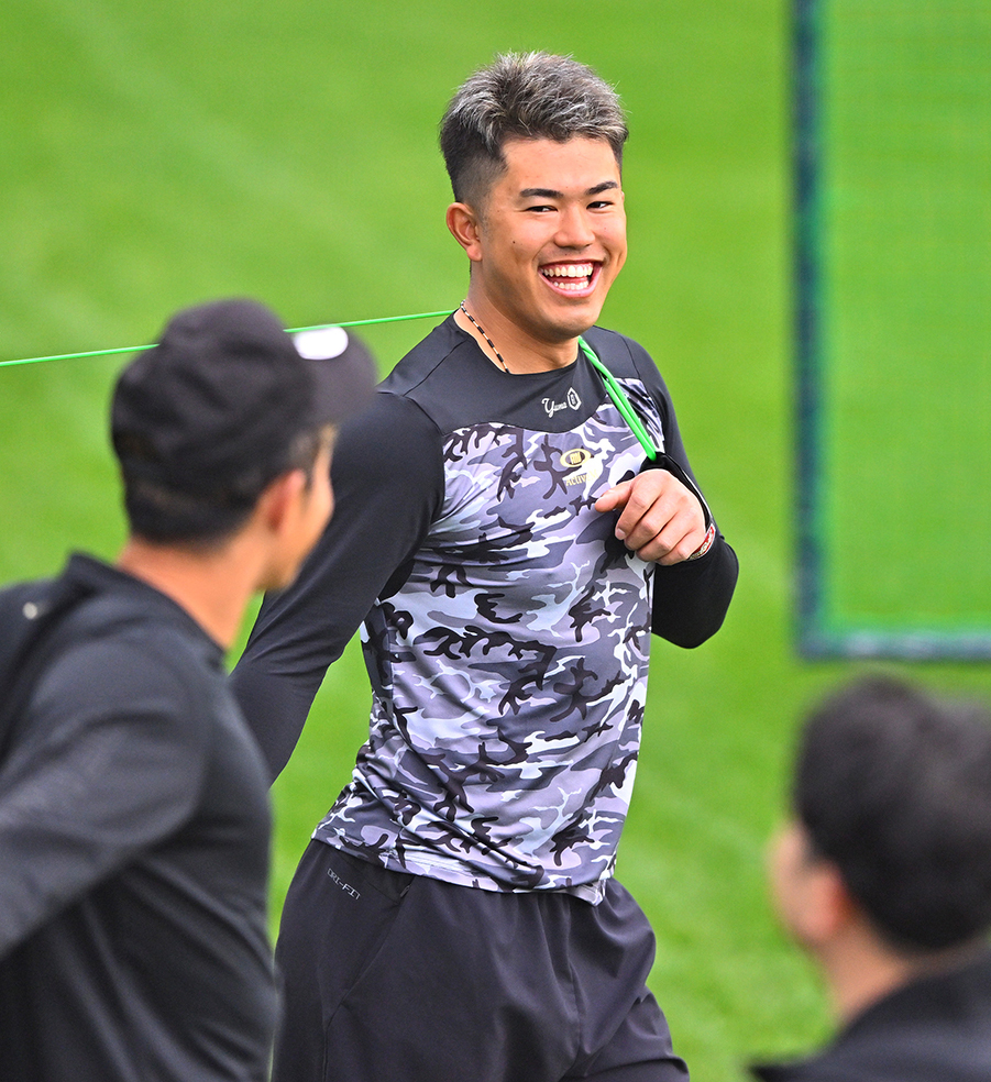 「例年、体脂肪とかも気にせず、とにかく食べて体重を増やそうと思っていた。ただでかくするだけだったんです。それだとスタートダッシュで正直、あまり動けていなかった。今年はそこを意識して、でかくしながらも動ける体づくりをコツコツやってきたので。いつもは1カ月くらいの急スパンでボーンとでかくするんですけど、それだと体脂肪率もガーンと上がっちゃうんで。今は、体脂肪率もシーズン中ぐらいの数字。むしろ、ここから絞れると思うので、今年の体の出来は良いのかなと思います」