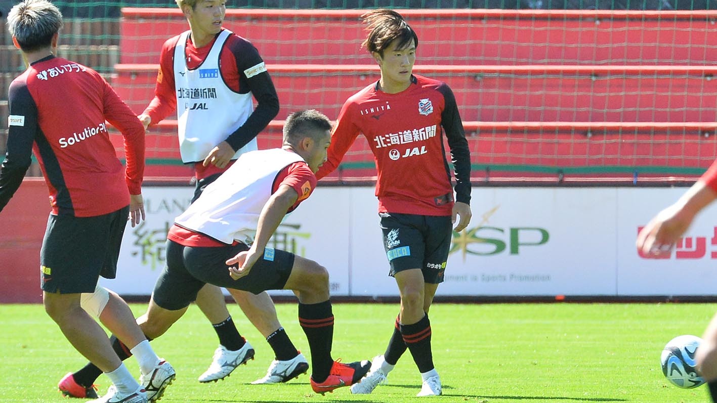 前日をオフに充てた北海道コンサドーレ札幌は練習を再開し、2部練習を実施。午前練習でパスや攻撃など、午後は5対5プラスフリーマンのパスゲームや11対11などを行った。札幌U-18出身で2025年シーズンからの札幌加入が内定している大阪体育大3年のMF木戸柊摩(21)が午前練習からチームに合流。昨年果たせなかったJ1リーグ戦出場を今季こそ達成し、本格的なプロ生活が始まる来季に向けて弾みをつける。また、DF岡村大八(26)が全体練習に完全合流。練習生として、関東リーグ2部エスペランサSC(神奈川)のMF楢本唯翔(21)とU-22日本代表への招集歴もある日本大2年のGK木村凌也(20)が参加した。