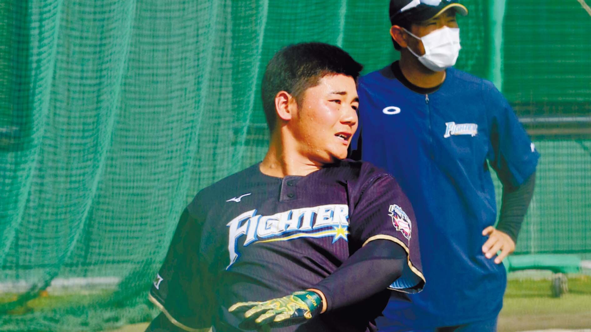沖縄県国頭村で秋季キャンプに参加している大砲候補の清宮が、稲葉GMに教わった特訓メニューの継続に意欲を示し、殻を破ろうとしている。目指すのは、新庄監督が率いる新生ファイターズの主役の座だ。