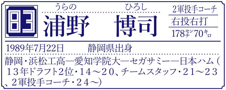 「今まで通りと言ったら変ですけど、コーチになったからといって、自分を変える必要はないのかなと思っています。自分は自分のままで、いいのかなとは思うので。もちろん、僕は現役の時に素晴らしいコーチに巡り会えた。その方たちのおかげで野球をやれたので、素晴らしいんですけど、でも自分は自分でしかないですし、変にコーチだから気負うとかもなく、僕のままでいいのかなと思っています。選手から、『浦野、ちょっとダメですよ』と言われたら、変えなきゃいけないですけどね(笑)」