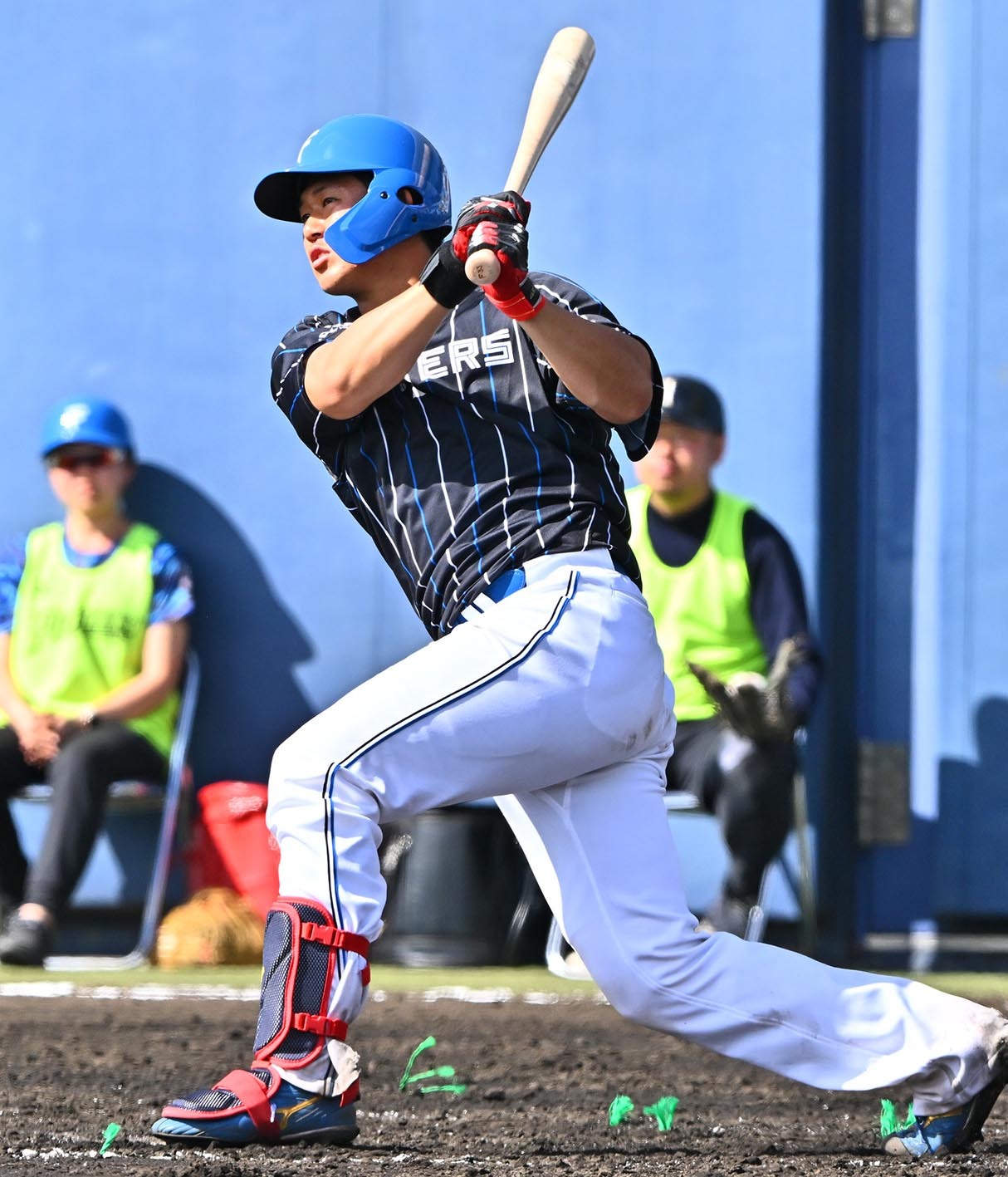 打っては高卒3年目の紅組・有薗直輝内野手(20)が猛アピール。二回の第1打席で右中間を破る二塁打を放つと、四回には左翼芝生席へ先制ソロを運んだ。紅組は五回にも1点を加えた。2死から2番の五十幡亮汰外野手(25)が一塁線を破る三塁打でチャンスメーク。続く石井一成内野手(29)が左中間に適時二塁打を放った。