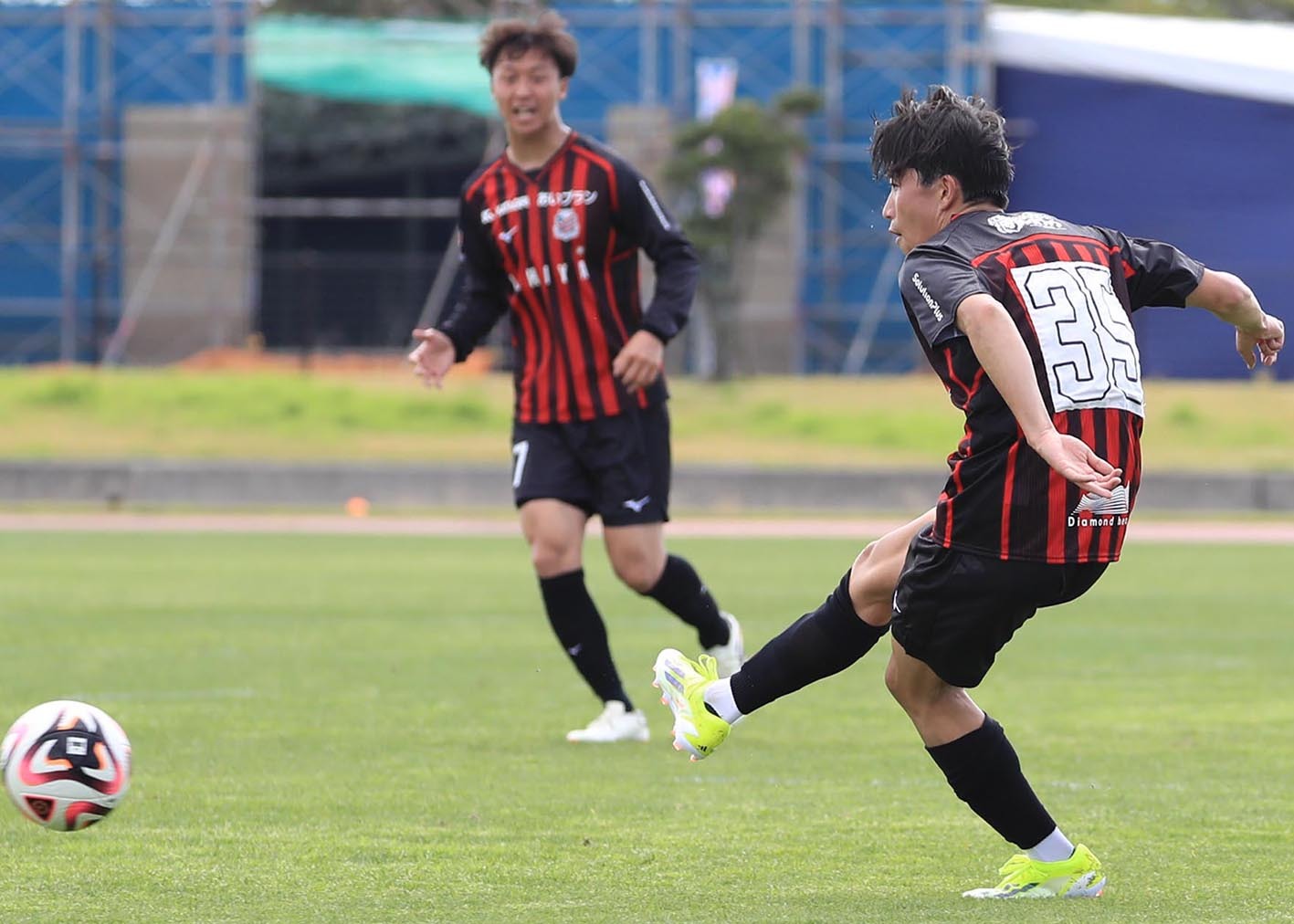 1月31日に札幌とのプロ契約発表後、初の対外試合となった原。初めて袖を通した赤黒のユニホームだったが、背番号「35」が入った試合用ユニホームは間に合わず、白地の臨時背番号を背負っての〝プロデビュー〟となった。