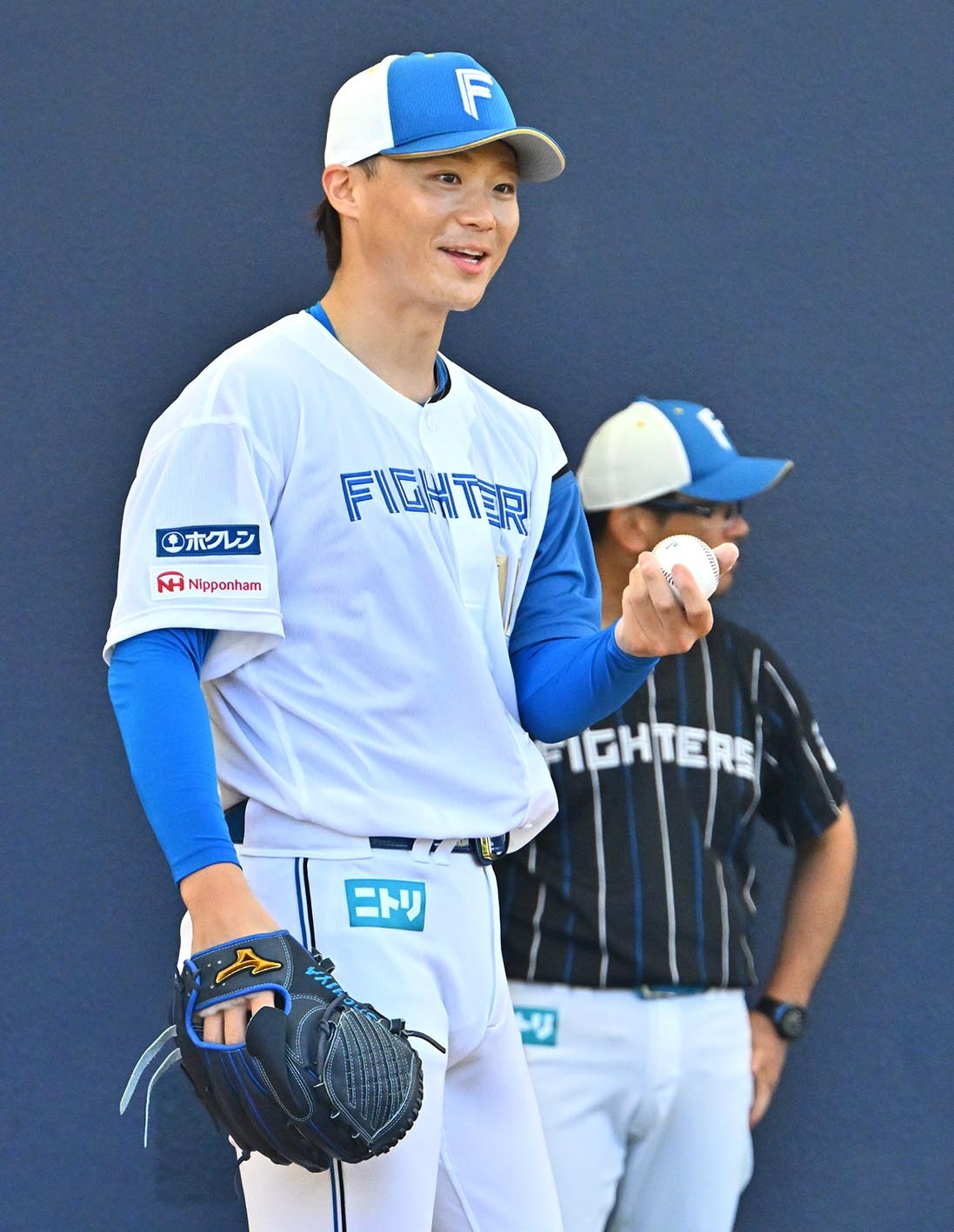 伏見の「よしいこう!」というかけ声で投球練習がスタート。持ち球の全球種を使い、テンポ良く43球を投げた。「ナイスボール」といった聞き慣れた声に「すんなり入れた気がしました」と感謝。投球後には「真っすぐの話だったり、変化球の話も」と会話を交わすシーンもあった。