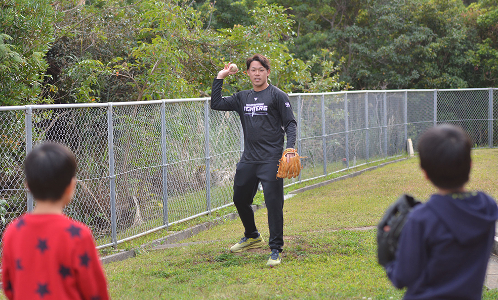 少年たちとキャッチボールを行い、得意のスライダーを伝授した根本は「めちゃくちゃ元気で、かわいくて、楽しかったです。第1クールは順調にできましたけど、ちょっと疲れはあったので、きょうで元気をもらいました」と笑顔。「あしたから第1クールよりも、もっと元気にやりたいと思います。2軍にいたら(きょう会った子どもたちに)見てもらえないと思うので、ずっと1軍にいられるように頑張りたい」と決意を新たにした。