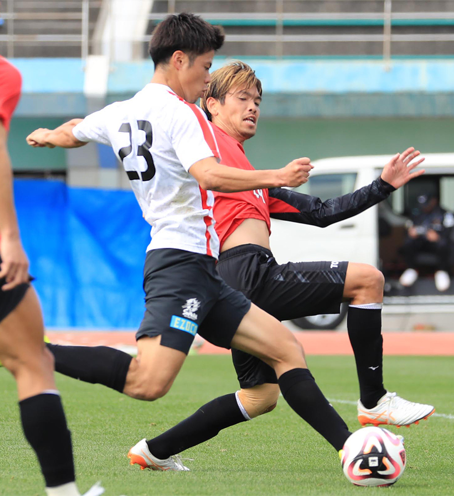 大森が堂々のエース争いを繰り広げている。0-1で迎えた1本目の43分。右サイドのMF近藤友喜(22)からのグラウンダーにスライディングしながら右足を伸ばして同点ゴール。「最初は寄ってそのままシュートを打とうかなと思いましたけど、そこでボール出てこなかったんで、トモキ(近藤)なら仕掛けられるかなと思って、中に置き直したらいいボールが来たんで、後は触るだけでした」と、鋭い嗅覚でゴールを奪った。