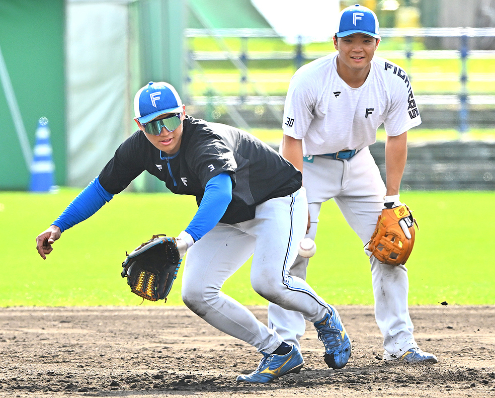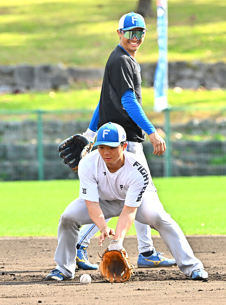 捕手がメインの郡司も新庄監督が見守る中、チームの行程練習で三塁に入り、丁寧に打球をさばいた。全体練習の後には、特守も敢行。中日時代、やみやざきフェニックス・リーグで守ったことはあるが、本格的に取り組んだことはない。