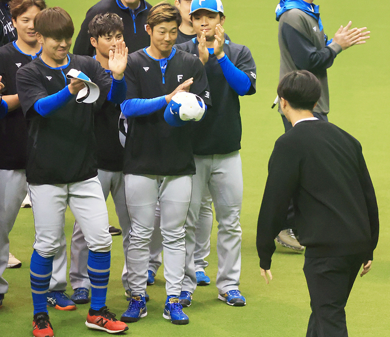 エースと過ごした時間が、自らを成長させてくれた。この日、大リーグ・レイズへ移籍する上沢が、名護での自主トレを終えて、あいさつに訪れた。若手時代から数多くバッテリーを組み、勝つ喜びを教えてくれた存在だ。