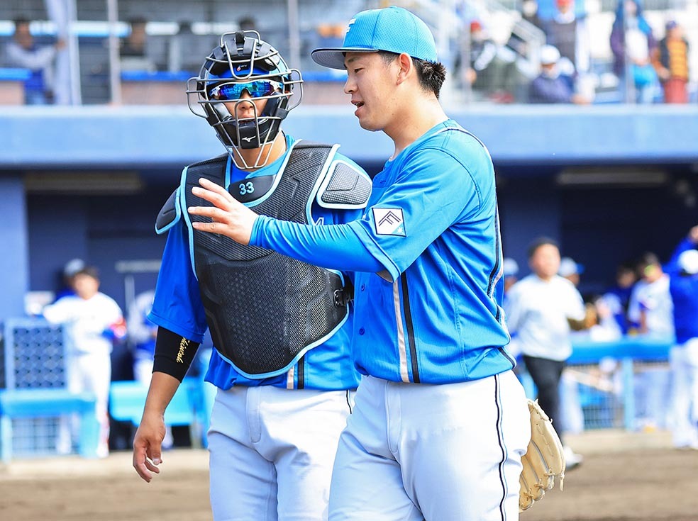 投げては先発の鈴木健矢投手(26)が2回1安打無失点と試合をつくった。2番手の北浦竜次投手(24)が2回、続く3番手の堀瑞輝投手(25)が1回をそれぞれパーフェクトに封じた。4番手の田中瑛斗投手(24)は3四死球と制球に苦しみながらも2回を無安打無失点でしのいだ。
