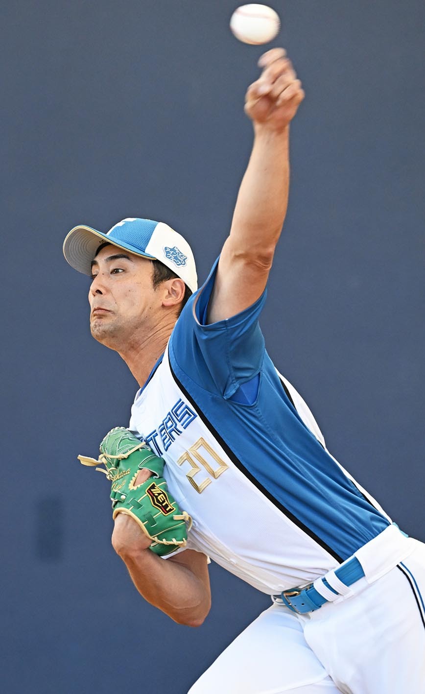 鋭い視線を受けながら、郡司を相手に黙々と投げ込んだ。投球の合間に新庄監督が歩み寄ってきて、言葉をかけられた。真剣な顔つきでうなずき、投球を再開した。