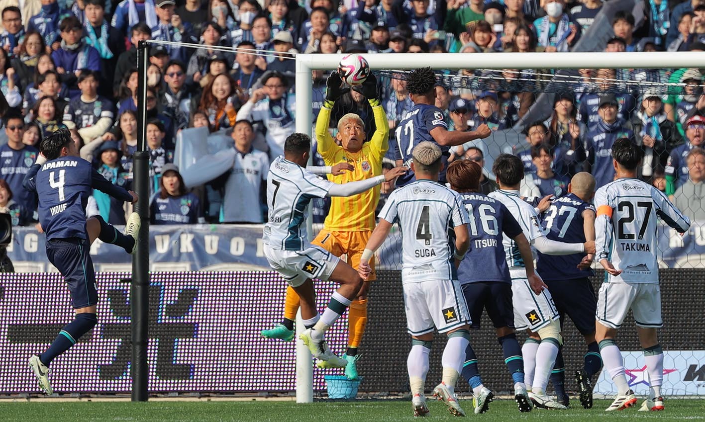 前日23日に行われた開幕戦前最後の練習。11対11の実戦形式練習で菅野は当初控え組でプレーしていたが、その最中に主力組のゴールを守っていたGK高木駿(34)が左足を負傷し開幕戦を回避することとなった。緊急登板の開幕スタメンだが、プロ22年目、昨年Jリーグ600試合出場を達成した百戦錬磨のベテランGKは動じることなく自らの務めをきっちり果たした。「みんな誰が出ても準備はできているグループだと思うので。そういうグループをつくってくれるGKコーチがいるので平常心でできました」と、日々指導に当たる赤池保幸GKコーチ(49)に感謝した。