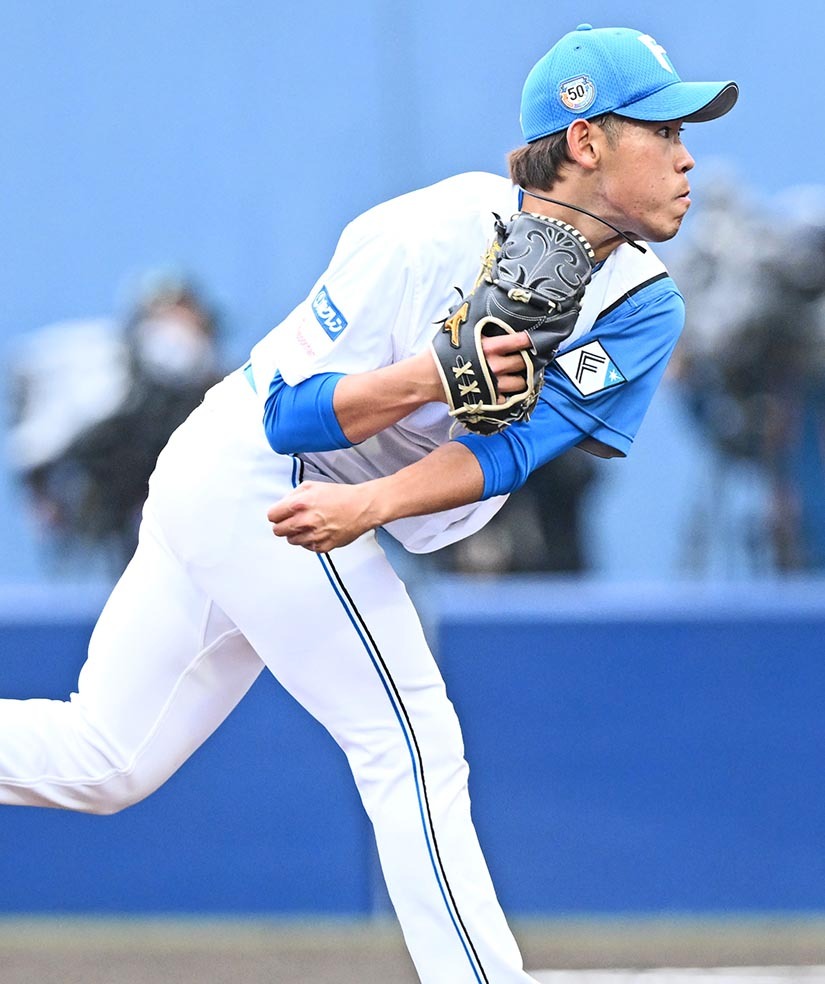空を雲が覆い、沖縄らしくない寒さが襲った名護のマウンドも、白老出身の道産子左腕には問題なかった。六回から3番手で登場し、4者連続三振を含む圧巻の8者連続斬り。八回2死から連打を浴びたが、「かなり気合が入りました」と、最後は坂倉を遊ゴロに打ち取り、笑みがこぼれた。