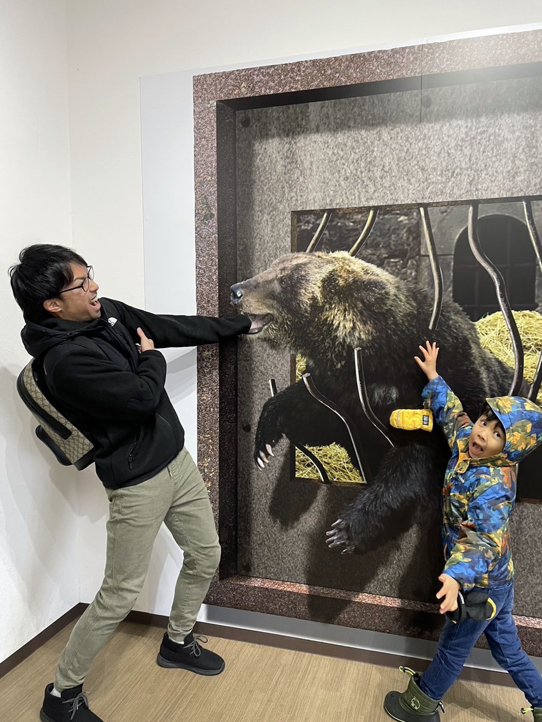 2月、のぼりべつクマ牧場のヒグマ博物館でトリックアートにびっくり(綿貫選手提供)