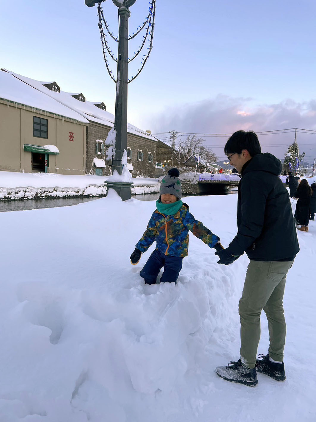 1月の休日に家族で小樽観光。雪遊びも楽しみました(綿貫選手提供)