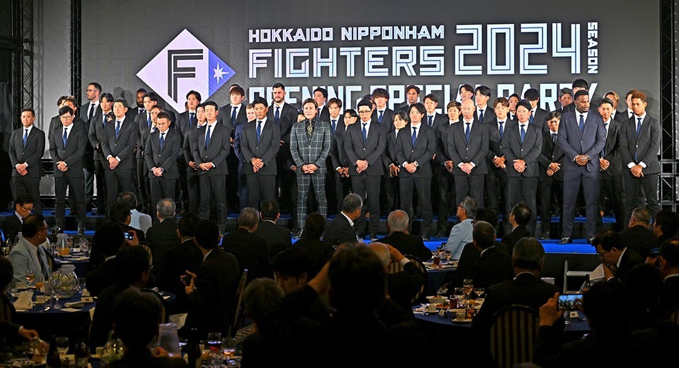 日本ハムを激励する「2024シーズン開幕スペシャルパーティ」が1日、札幌市内のホテルで開かれた。新庄剛志監督(52)、コーチ、選手らが来賓約200人の前で、8年ぶりのリーグ優勝と日本一を誓った。