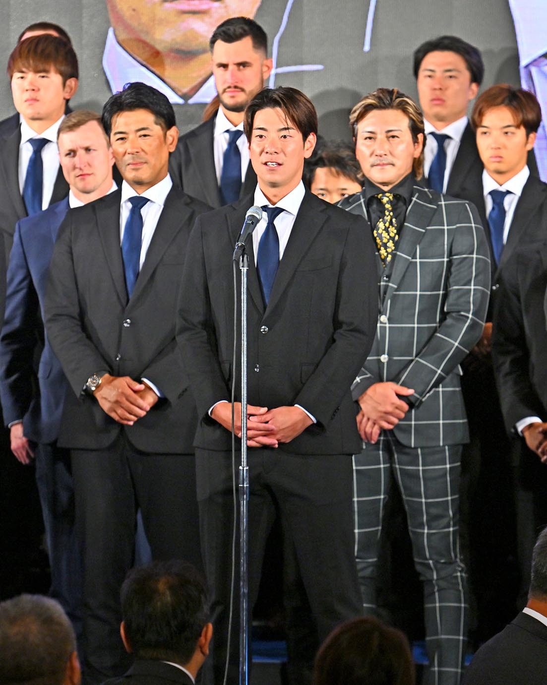 パーティーの最後には選手会長の松本剛外野手(30)が「今年こそは必ずファイターズが北の大地を盛り上げる。北海道のファンに良いニュースを届けられるように選手一丸で戦う」と決意表明。会場から大きな拍手が起こった。