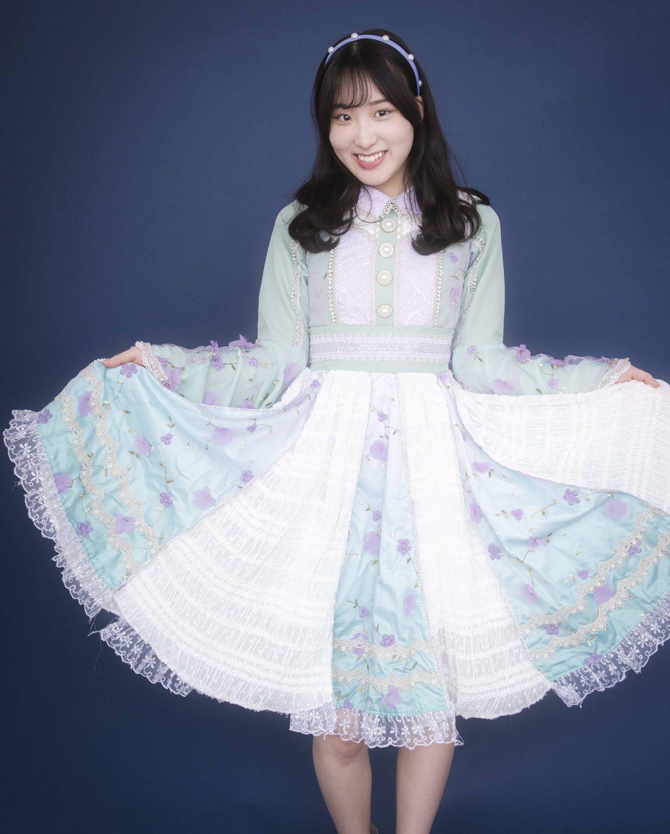 これは「花」と「栞」をリリースしたときの衣装です。プリンセスみたいで好きです