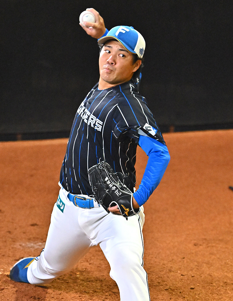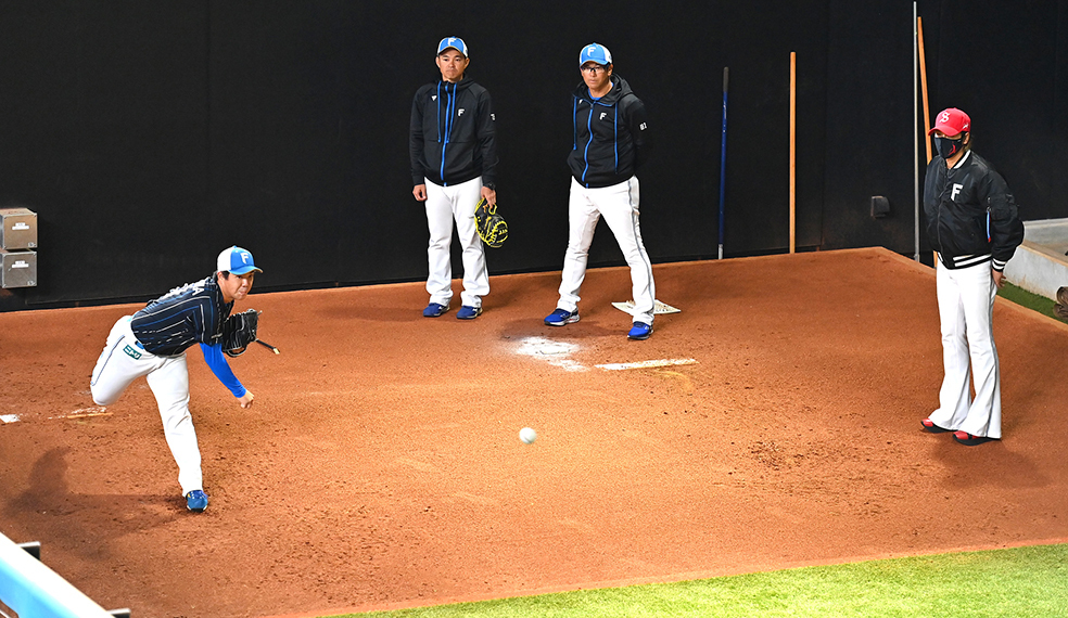 ブルペンで投球練習を開始すると、新庄監督が視察に訪れた。これも期待の表れだ。登板後、投手コーチや捕手と入念に話し合った2年目右腕は「ああやって(監督が)見ていると、僕も緊張します。やっぱり悪いところを見られたくない。力んじゃって、ちょっと良くなかったです。試合だったら、もっと緊張すると思うので、監督が見ていてもちゃんとできるようにしたい」と気を引き締めた。