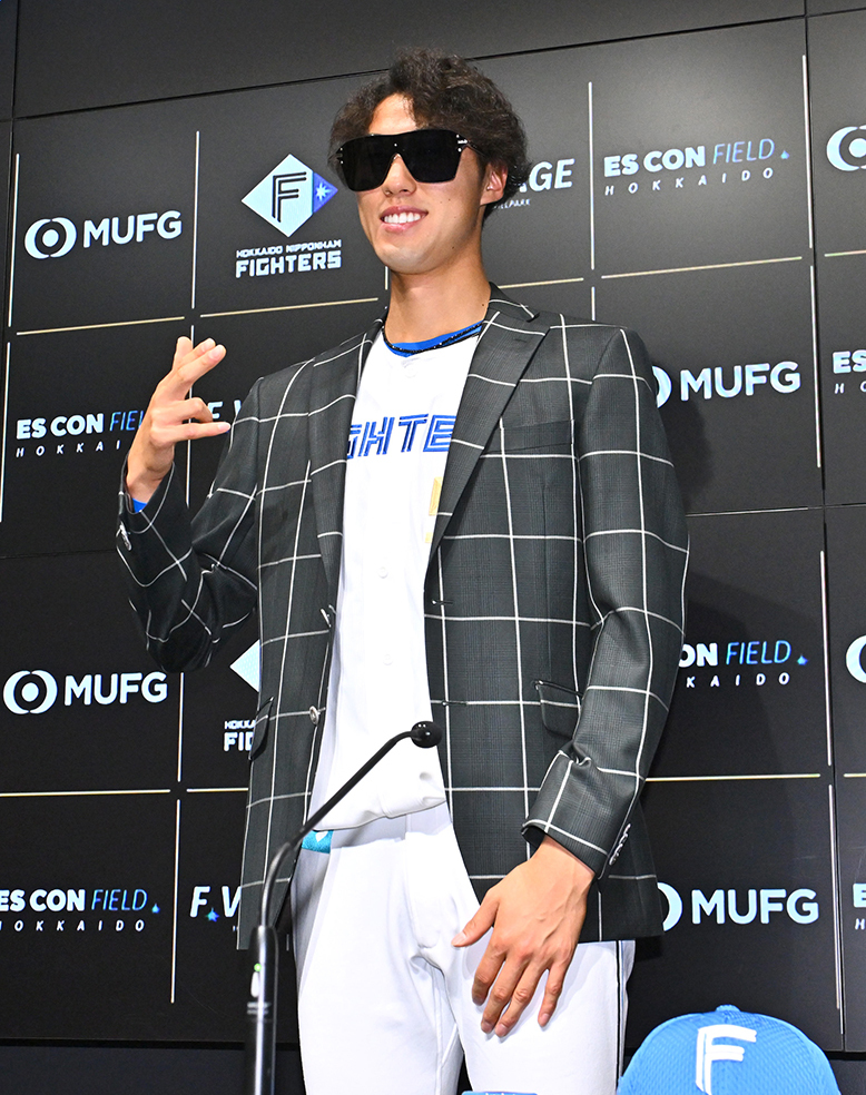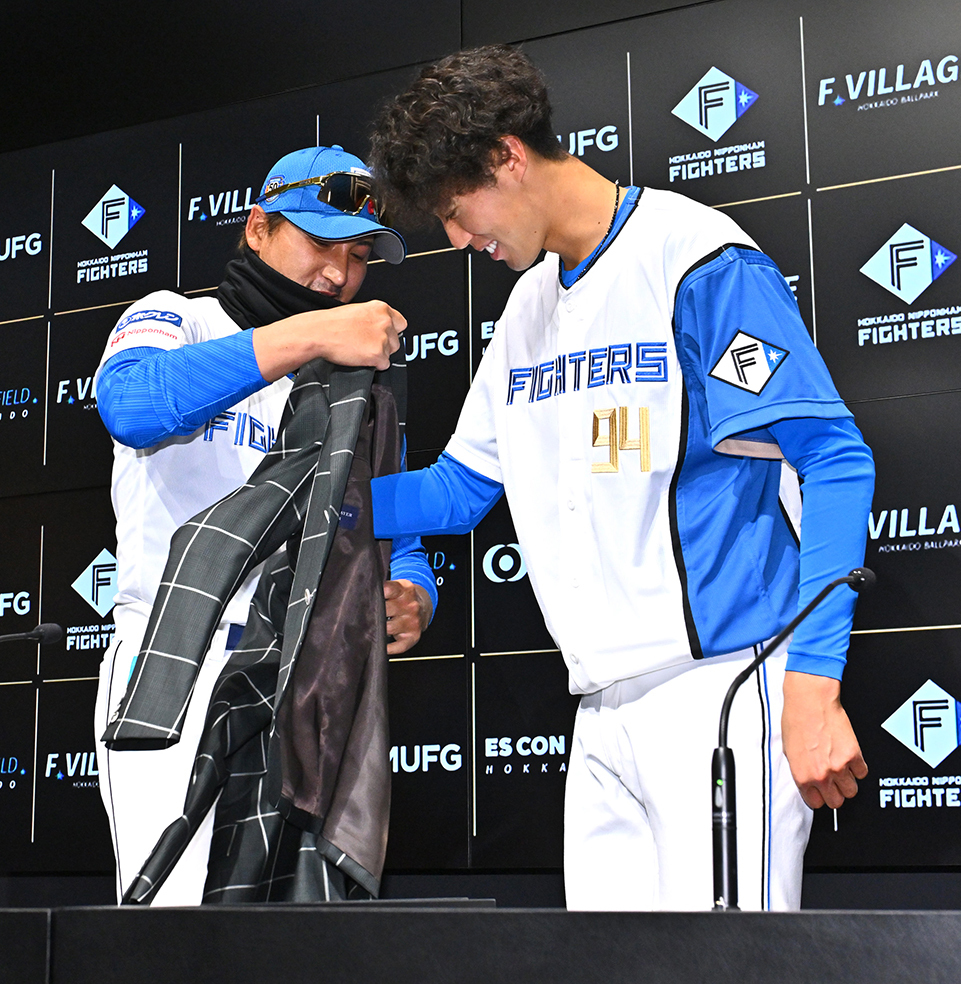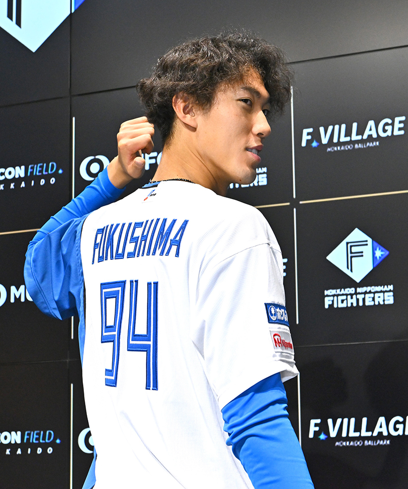 高卒3年目の日本ハムの福島蓮投手(20)が14日、球団と支配下選手契約を締結し、木田優夫GM代行(55)とエスコンフィールドで会見に臨んだ。記者に扮して会場に現れた新庄剛志監督(52)からは、サプライズで約80万円の高級スーツとサングラス、整髪料をプレゼントされた。2021年の育成ドラフト1位で入団した青森出身右腕。念願の昇格を勝ち取り、背番号は「121」から「94」に変更された。一問一答は以下の通り。