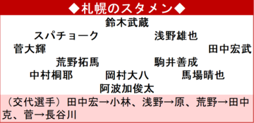 札幌は反撃するべく、同12分にゲームメーカーのMF小林祐希(31)、22分にドリブラーの高卒ルーキーMF原康介(18)、34分には大卒ルーキーMF田中克幸(22)と長谷川竜也(30)を同時に投入し、攻勢を強めた。