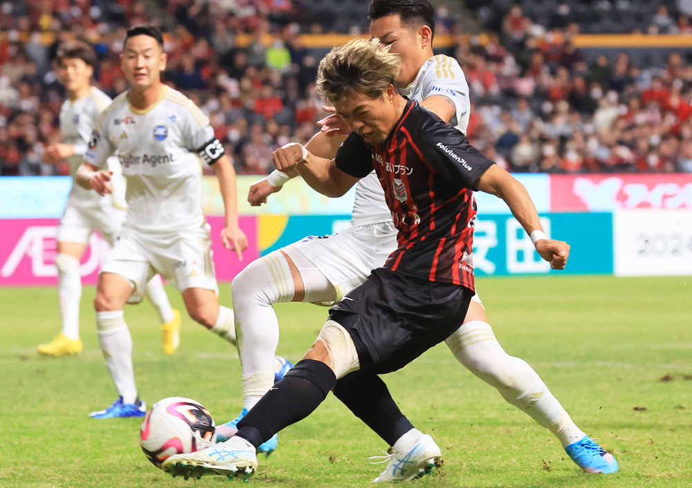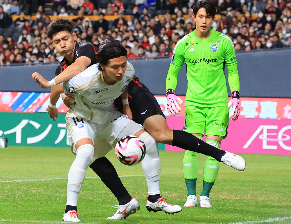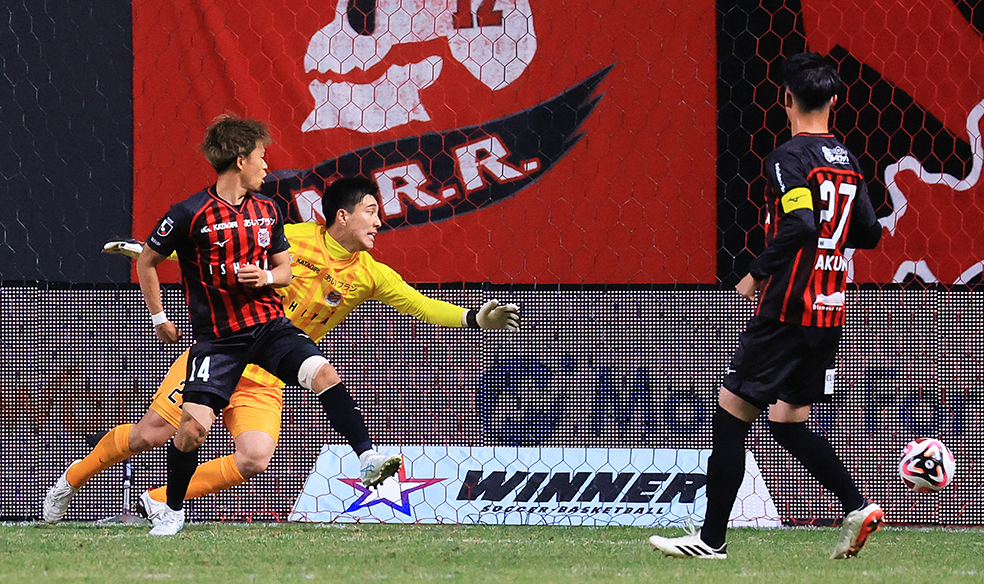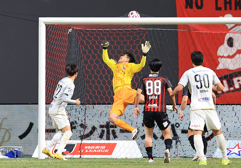 開始1分、いきなり自陣右サイドのロングスローからピンチを迎えたが、2戦連続先発起用となったGK阿波加俊太(29)がゴール前の攻防を体を張ってセーブ。29分にはクロスのこぼれ球を相手FWオセフンにフリーでシュートを打たれたが、ここも阿波加が前に出て防ぐ。38分には相手右サイドを抜け出されて打たれたMF平河の左足シュートを、同じU-23日本代表のDF馬場晴也(22)がスライディングでブロック。間一髪のところでピンチを免れ、前半を何とか0-0で折り返した。