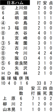 投げては先発の上原健太投手(29)が6回7安打2失点と試合をつくった。2番手登板の柳川大晟投手(20)は2回、3番手の山本晃大投手(24)は1回をそれぞれ無失点に抑えた。