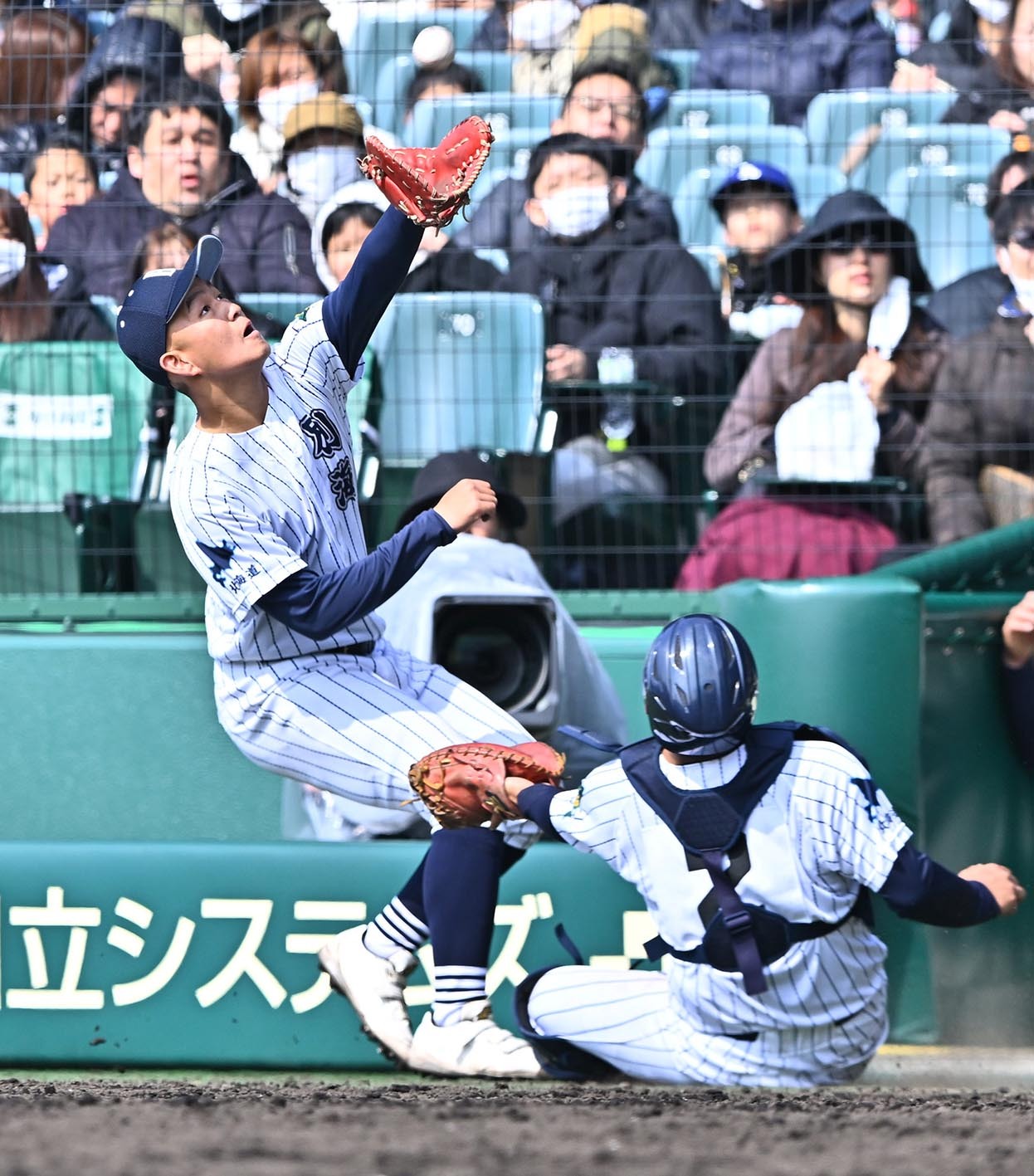 打線も創志学園のエース左腕・山口瑛太投手(3年)を打ちあぐねた。四回1死、影山がチーム初安打を放ち、2死二、三塁の好機をつくったが、5番に座った堺が空振り三振。六回にも四球と死球で無死一、二塁の絶好機を迎えたが、犠打失敗が響き無得点に終わった。7点ビハインドの九回、意地を見せたいところで2本の安打を重ねた。2死一、二塁の場面で打席に入った7番・千田涼太二塁手(3年)は直球を捉えたが、中堅正面を突いて試合終了。最後まで得点を挙げることができなかった。
