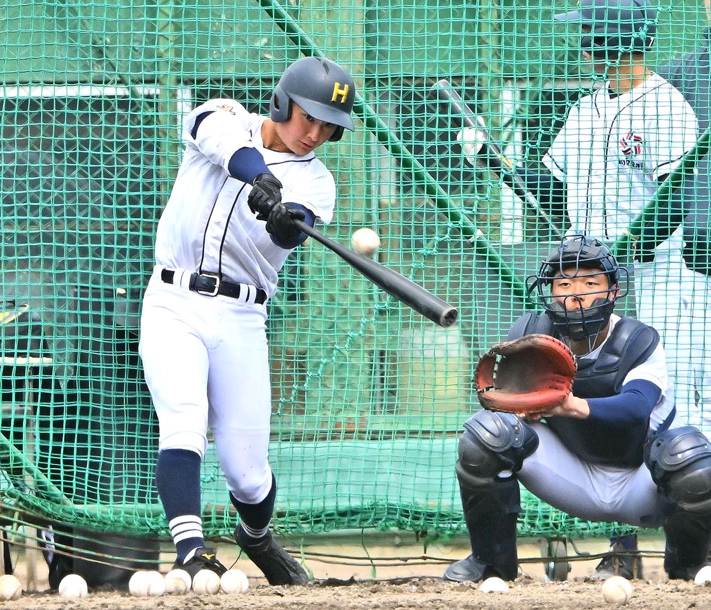 北海ナインは雪がちらつく寒空の下で汗を流した。1回戦の相手は昨秋の近畿大会を制し、今大会でも優勝候補に挙げられている大阪桐蔭。背番号1を背負う平嶋桂知(かいち)投手(3年)を筆頭に、最速140キロ超の投手が揃う。昨夏からレギュラーに名を連ねる宮下は「全員球が速くて強い。ストレートで押してくると思うので、振り負けないようにすることが一番」と、全国屈指の投手力に臆することなく真っ向から立ち向かっていく。この日の練習では一塁ベンチ前に打撃練習用マシンを置き、150キロ設定の投球に各選手が目を慣らした。