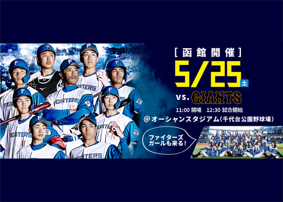 日本ハムは22日、5月25日に函館・オーシャンスタジアムで行われるイースタン・リーグ巨人戦の入場チケットを、3月27日からファンクラブ会員のFAVランク別に販売すると発表した。一般販売は3月31日から開始する。ネット裏のSS指定席から、S指定席、内野A指定席、内野B自由席まで各種座席があり、試合当日は「みんなのボールパーク」と題して、体験型の催し物も用意される。