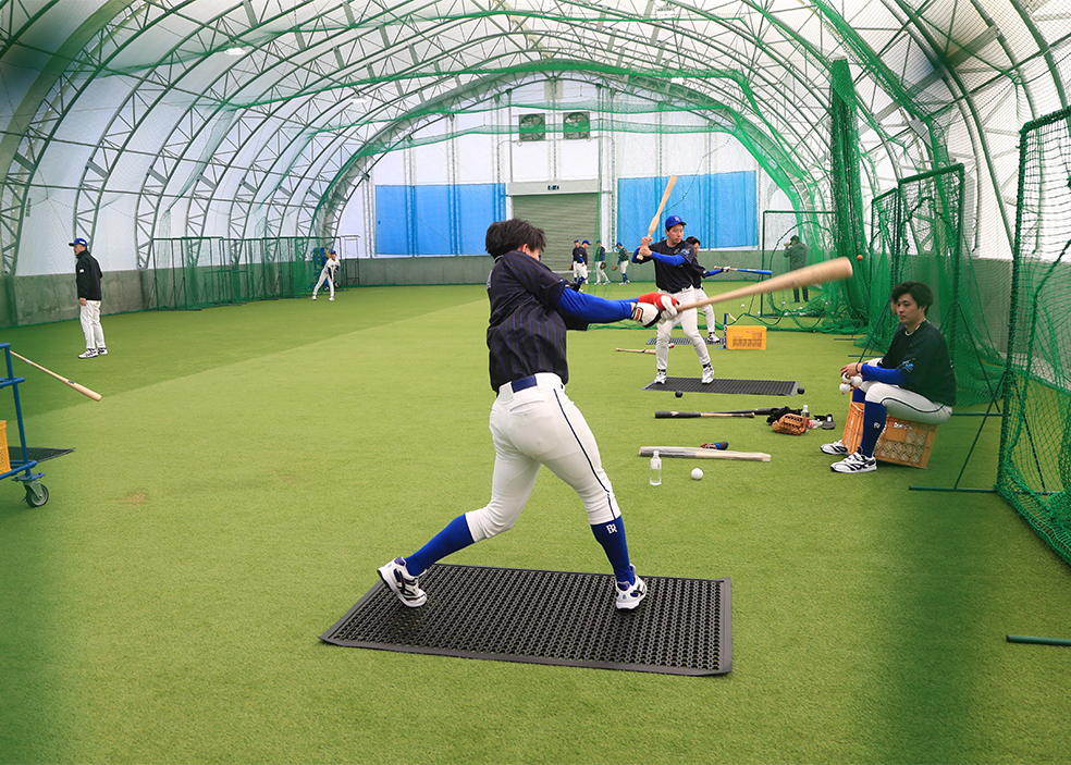道内社会人野球では数少ない自前の室内練習場