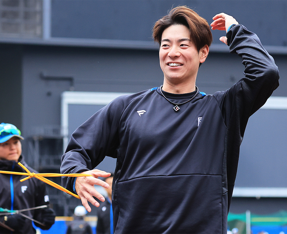 松本剛によると、本拠地・エスコンフィールド北海道のロッカーが近く「大海とは、最近ちょくちょく話しています」。自然と会話が弾むような仲になった。