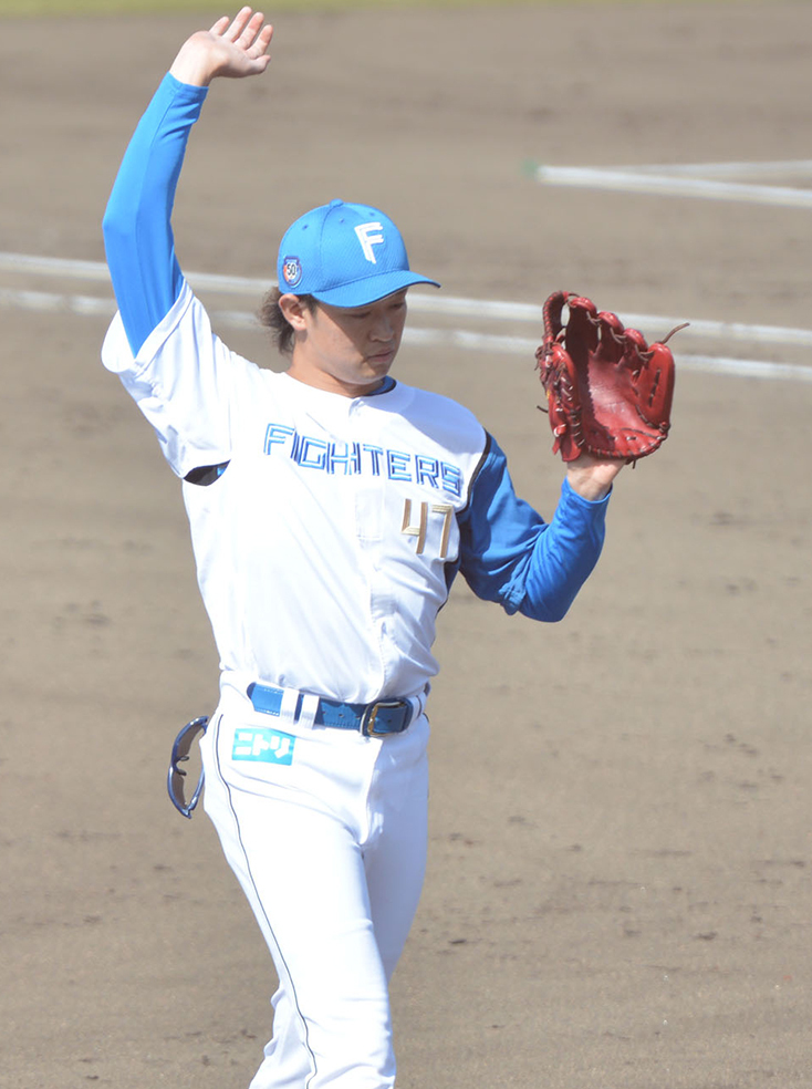 いつも通り、下手投げから繰り出す緩急自在な投球術で、打者を翻弄した。五回先頭の高部を2球で遊ゴロに仕留めてリズムに乗ると、続く松石には91キロのカーブも交えながら、空振り三振を奪った。最後は池田に三ゴロを打たせ、わずか10球でピシャリ。「ちょっとスライダーが引っかけ気味だったので、そこは修正しないといけないかなと思います。シンカーは良かったですし、真っすぐも操れたので、あとはスライダーだけですね」。収穫と課題を手にし、充実感をにじませた。