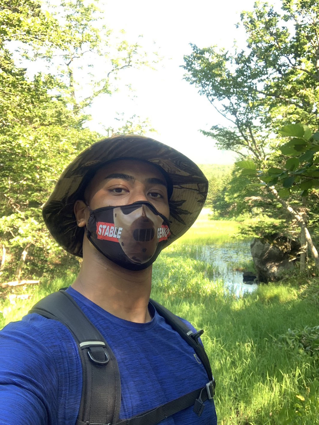 知床では知床五湖の自然散策を満喫するナナー選手。天気も快晴だった=2022年夏、本人撮影
