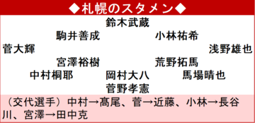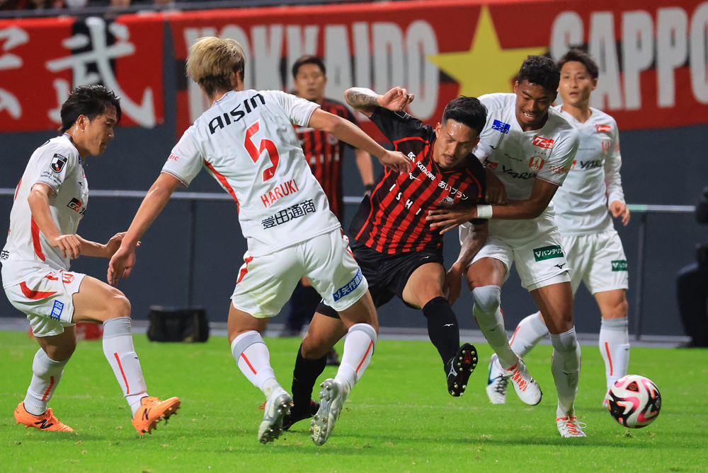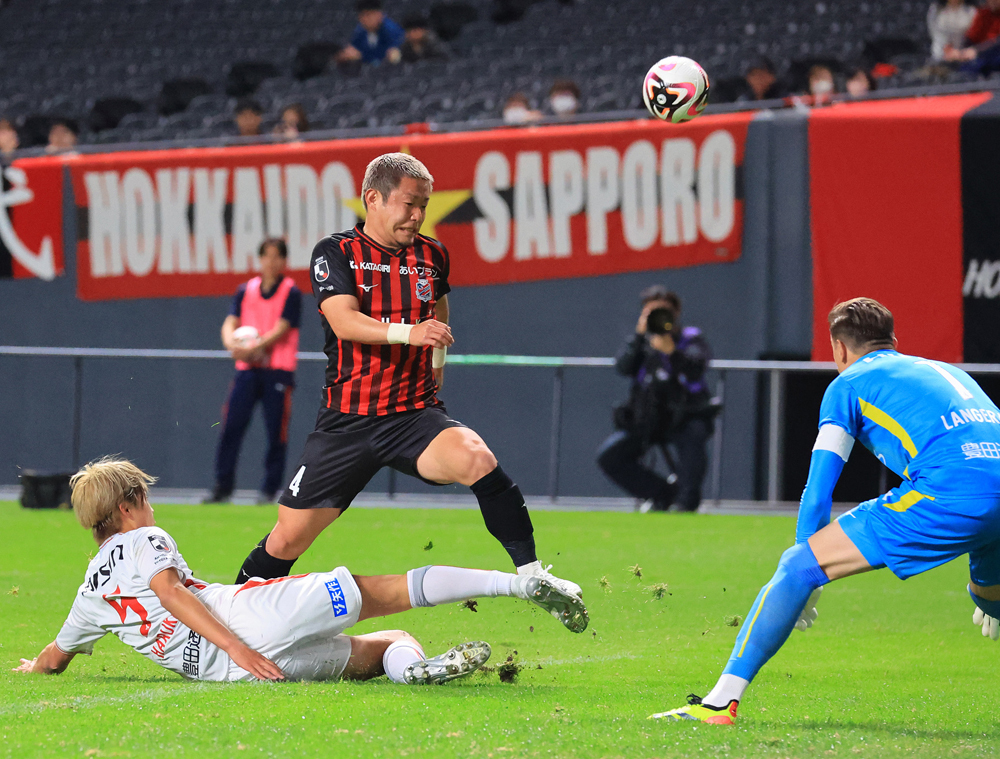 後半13分にDF髙尾瑠(27)とMF近藤友喜(23)を、同25分にはMF長谷川竜也(30)を投入し、立て直しを図るが、得点できず。同29分にはMF宮澤を下げてMF田中克幸(22)を入れたが、終了間際の後半45分、DFとGKの間へのロングボールを名古屋FW永井に技ありループシュートを決められ、1-2。勝ち点を得ることなく、札幌の5連敗となった。