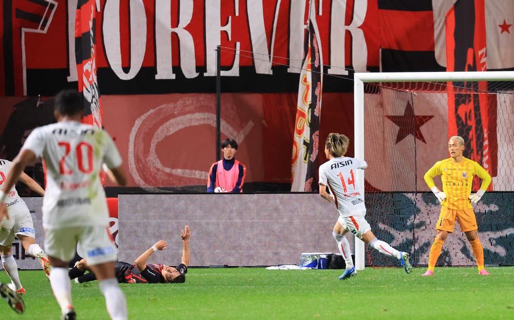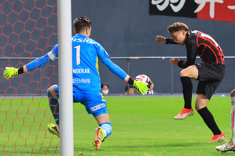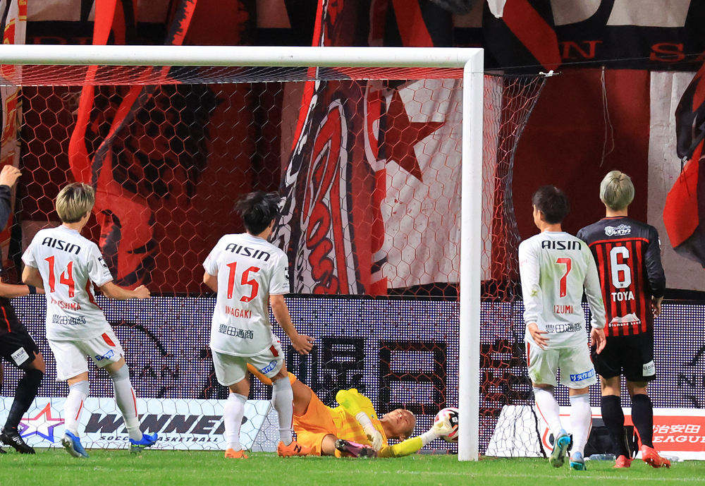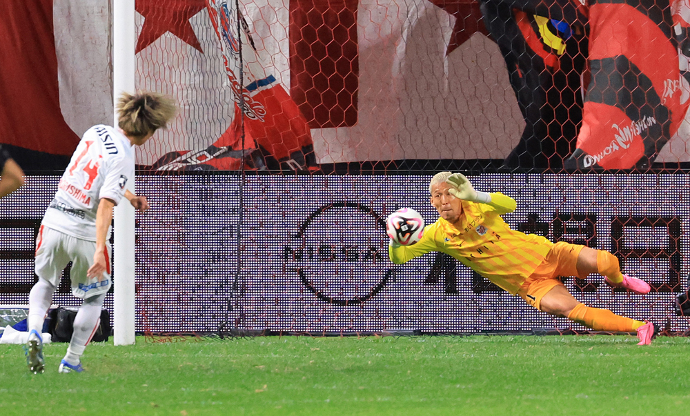 1-0で折り返したが、後半9分、菅のファウルでPKを献上。名古屋MF森島のPKを、GK菅野孝憲(39)がいったんはじくが、セカンドボールを再び森島に頭で押し込まれ、同点に追いつかれた。