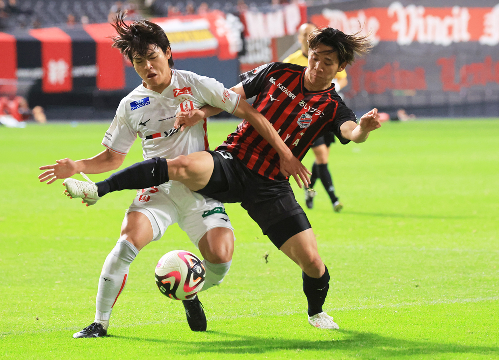 前半30分、待望の先制点が生まれた。右サイドを攻め上がったDF馬場晴也(22)が、MF浅野雄也(27)のスルーパスのこぼれ球に反応。右足で放ったシュートはゴール左下に突き刺さり、馬場はプロ初ゴールを決めた。