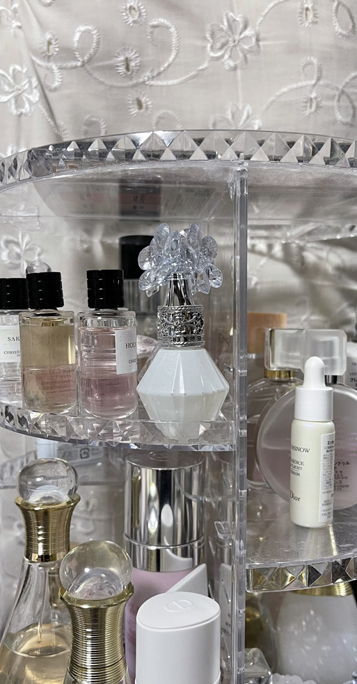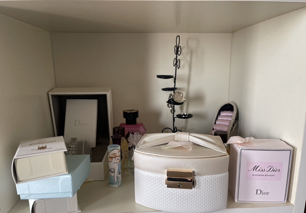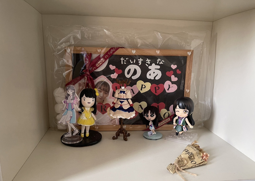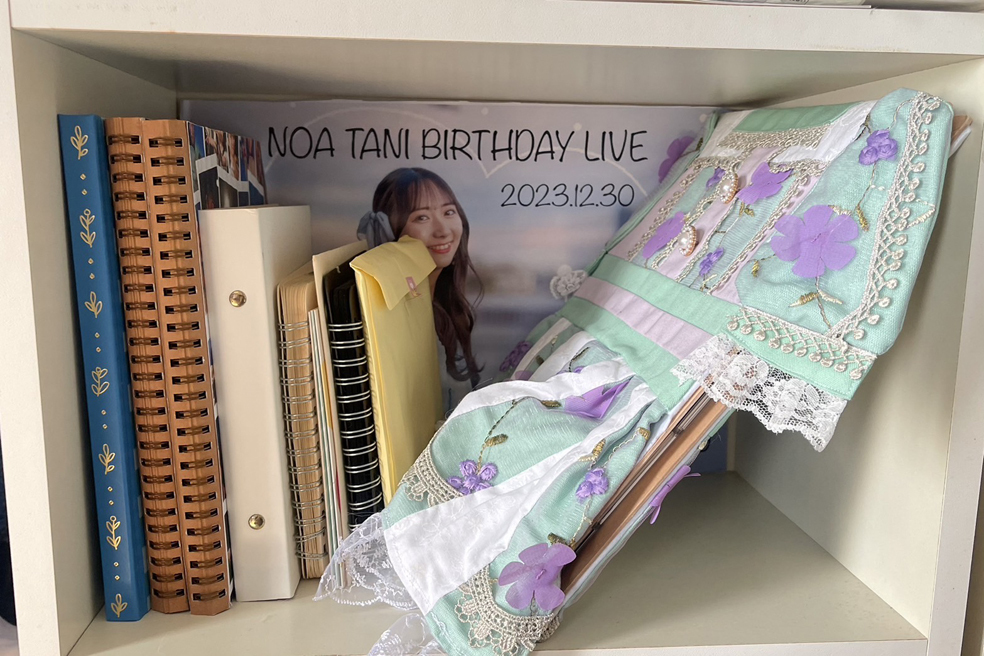 この棚には、ファンの方からこれまでの生誕祭の時にいただいたメッセージアルバムなどを飾ってます。他にもお手紙ボックスを5個保管してます。